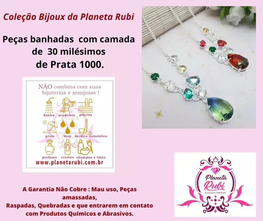 Colar com zircônia gota colorida com micro zircônias circulares .Medida : 47 cm + 7 cm alongador = 54cm total.Colar ajustável.Folheado prata 1000 com camada de 30 milésimos.